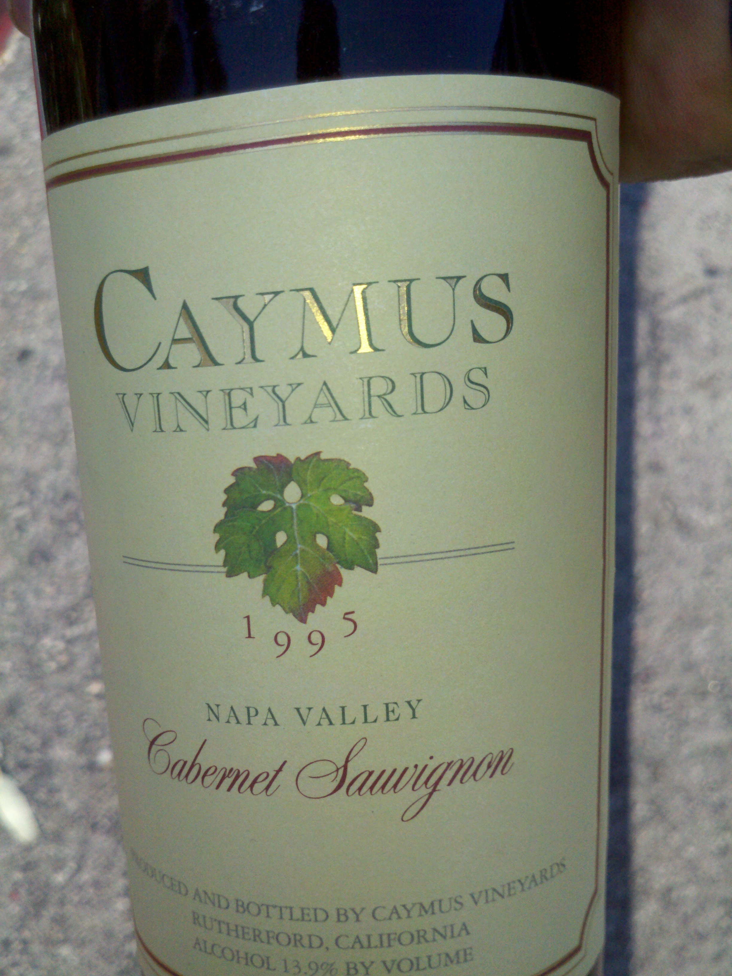 - 1995 Caymus Cabernet Sauvignon Napa Valley, right before the U2 concert at Angel Stadium, coinciding with the wedding anniversary of me & Mrs. CKDH: Once it opened up a little, still lots of great fruit on the nose; on the palate, nice and complex, though the tannins were quite a bit softer compared to how I remember the last bottle of ’95 we opened last year. Smooth and long lasting finish. The prime rib and steaks that we ordered at Prime Cut were decent, but undistinguished; what can you expect from a place where burgers take up almost as much room on the menu as the steaks; still, we weren’t expecting anything much more than we got.