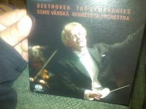 As the winner, I had the choice between four tickets to a Minnesota Orchestra concert or a copy of their SACD recording of all nine Beethoven symphonies. I tried really hard to schedule a business trip to the Twin Cities to see the orchestra play — especially considering they had a performance of Rite of Spring lined up — but, alas, it was not to be; however, the Beethoven discs have proven to be a nice alternate prize.