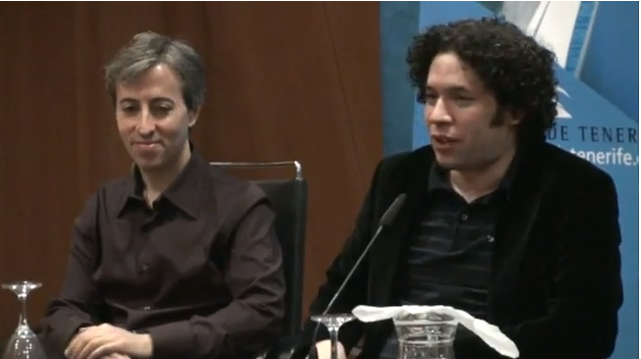 Esteban Benzecry and Gustavo Dudamel before the world premiere of "Rituales Amerindios," Canary Island Music Festival 2010 (image from video edited by Måns Pär Fogelberg)