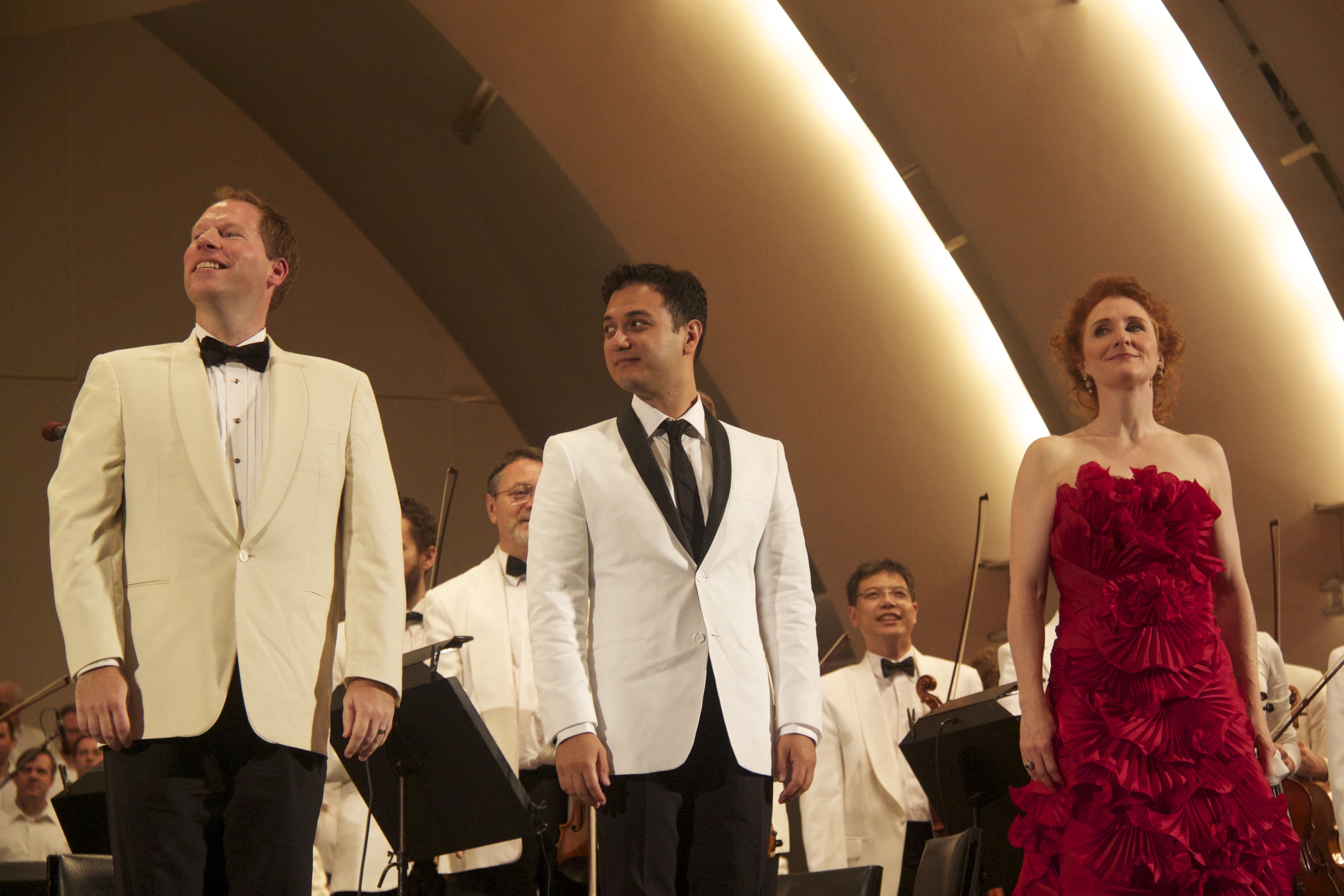 Three vocal soloists added personality and spice, with all giving earnest characterizations without allowing things to ever become slapstick. Baritone Hugh Russell imbued his many vocal roles with a rich, sensitive tone, playing off orchestra and chorus with attitude and excellent comic timing. Laura Claycomb was the stunning soprano, giving a convincing sense of innocence to go along with incredible touch and control throughout, most especially in a show-stopping vocal run in the “Dulcissime.” Tenor Nicholas Phan sang the brief and rather thankless high-voiced role of the roasting swan with just enough irony and without any astringency. The Los Angeles Children’s Chorus sang their even briefer moment with charm.