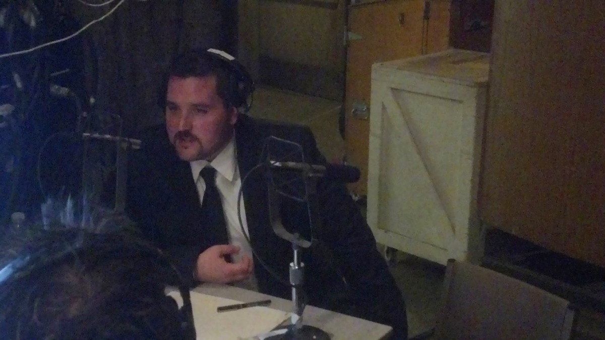 Thaddeus Strassberger, Director of “I Due Foscari,” being interviewed between Act 2 & 3: Opening night of “I Due Foscari” at LA Opera (photo by CK Dexter Haven)